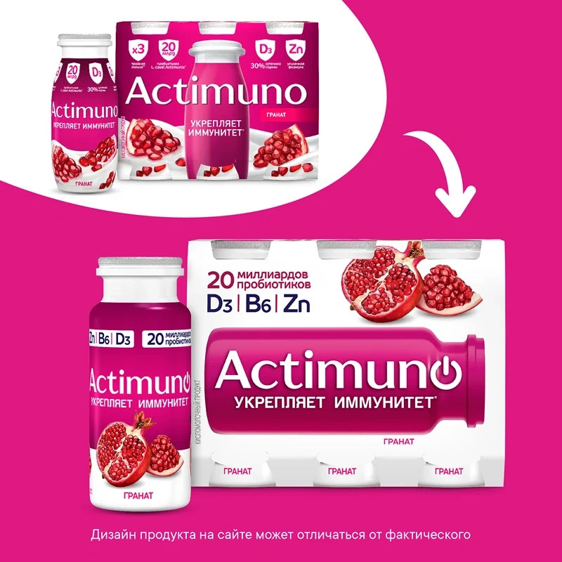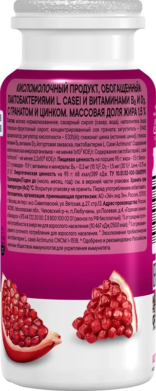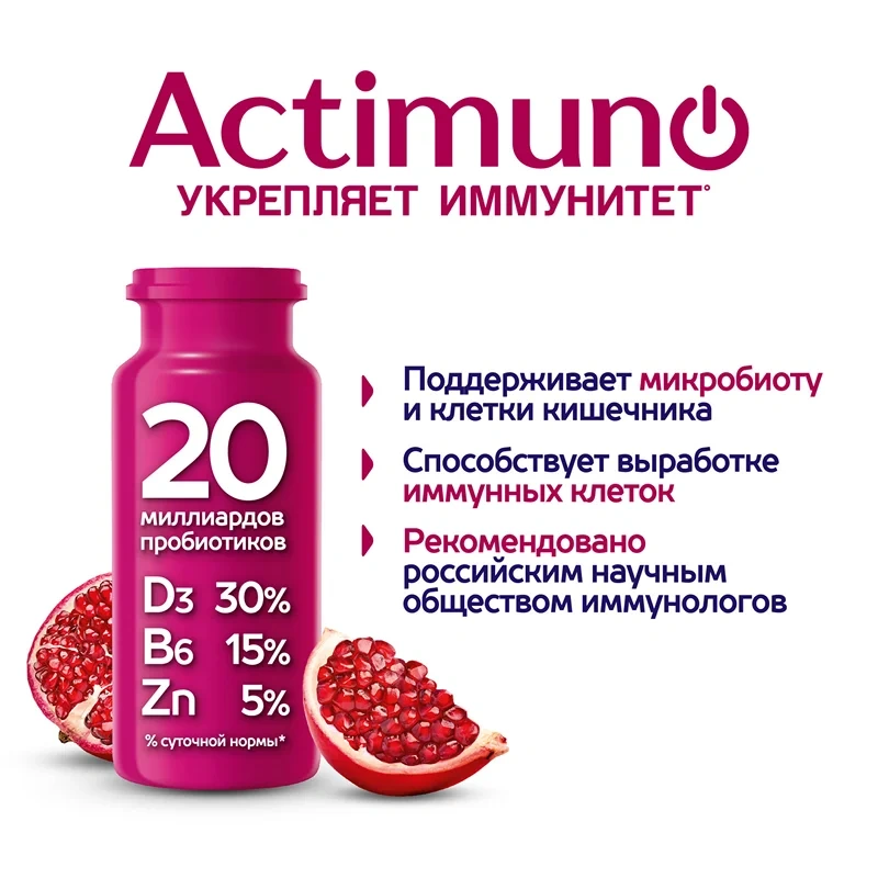 Напиток кисломолочный Actimuno гранат 1.5%, 95г