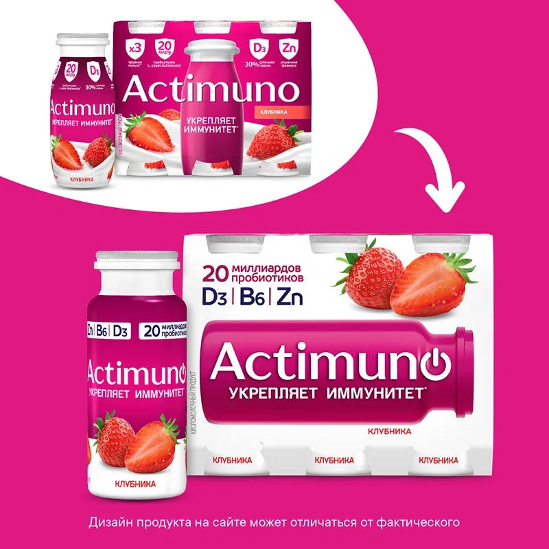 Напиток кисломолочный Actimuno клубника 1.5%, 95г