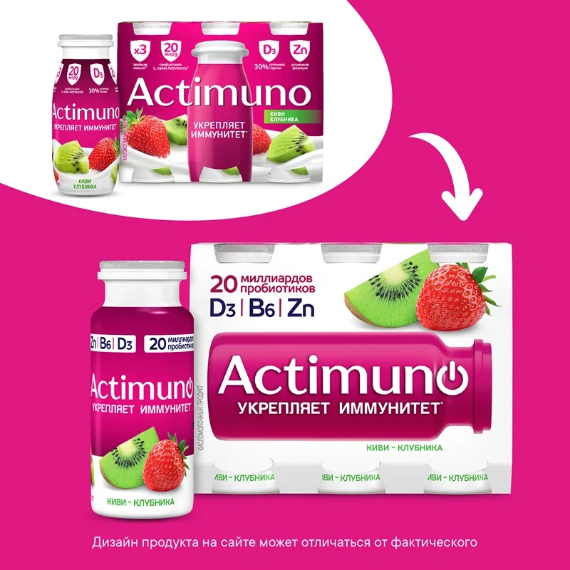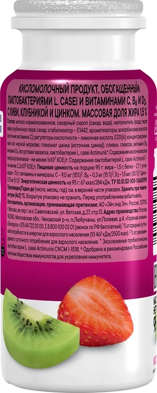 Напиток кисломолочный Actimuno клубника-киви 1.5%, 95г