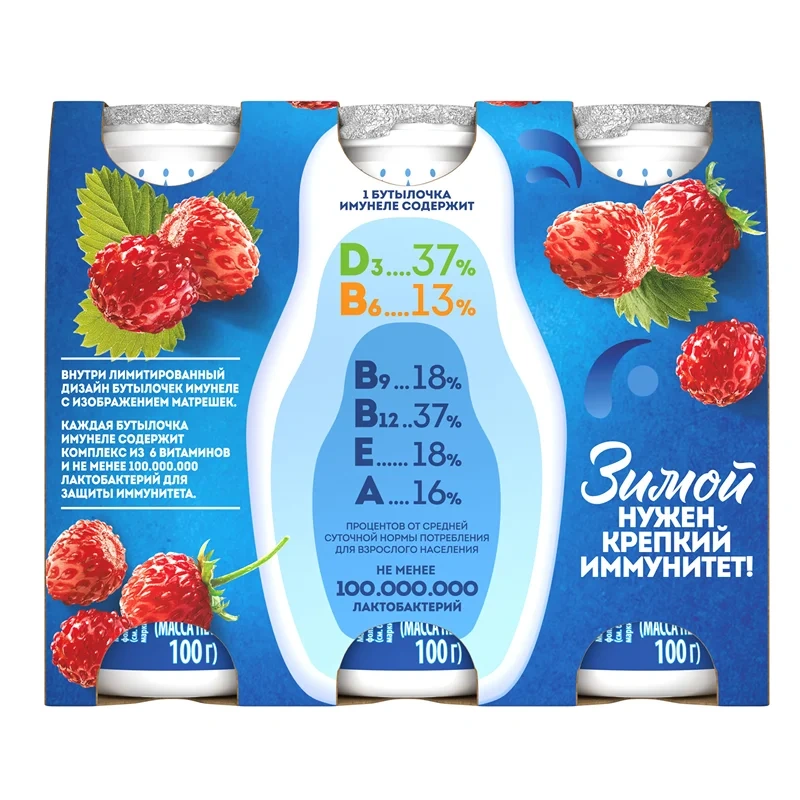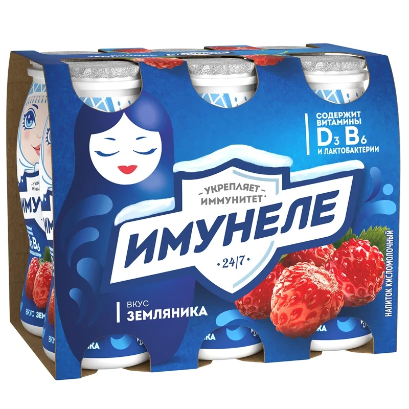 Напиток Имунеле кисломолочный с земляникой 1.2% 100 г