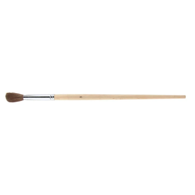 Пучок волос с верхнего кончика хвоста пони, он мягкий и эластичный, отличается надежностью и долговечностью. Кисть имеет короткую (17 см), деревянную ручку.