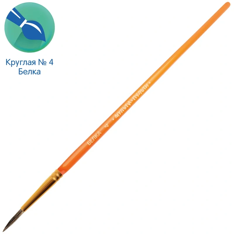 Кисть круглая № 4 «Мульти-Пульти» предназначена для детей с начальным и средним уровнем подготовки. Используемый натуральный волос белки обладает капиллярным эффектом, поэтому кисть можно использовать в том числе для акварельных красок. Форма обоймы ? круглая.