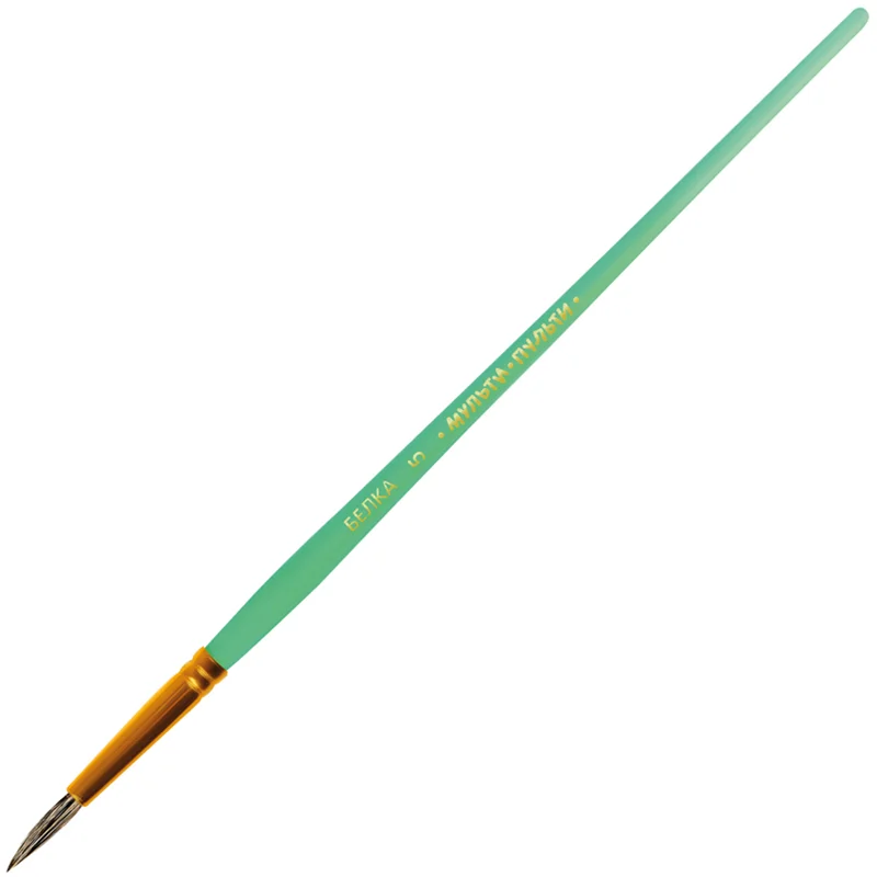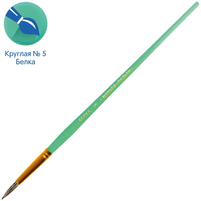 Кисть круглая № 5 «Мульти-Пульти» предназначена для детей с начальным и средним уровнем подготовки. Используемый натуральный волос белки обладает капиллярным эффектом, поэтому кисть можно использовать в том числе для акварельных красок. Форма обоймы ? круглая.