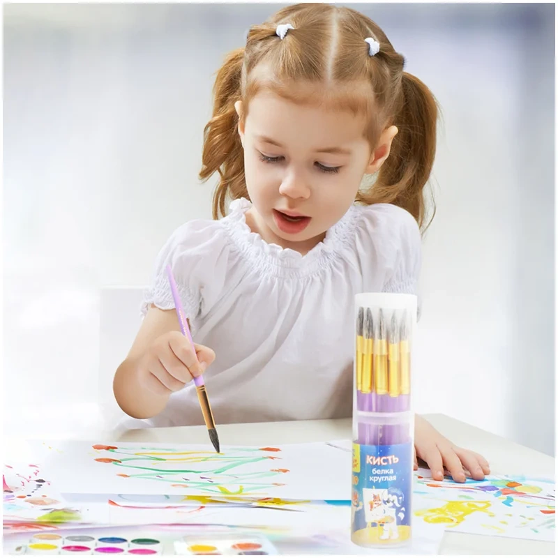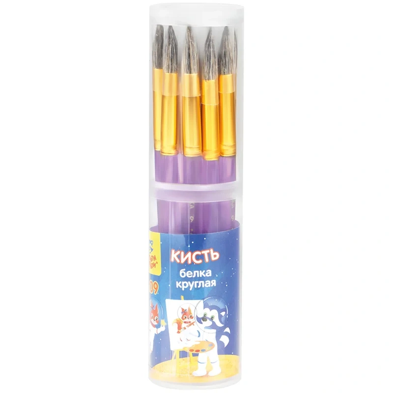 Кисть круглая № 9 «Мульти-Пульти» предназначена для детей с начальным и средним уровнем подготовки. Используемый натуральный волос белки обладает капиллярным эффектом, поэтому кисть можно использовать в том числе для акварельных красок. Форма обоймы ? круглая.