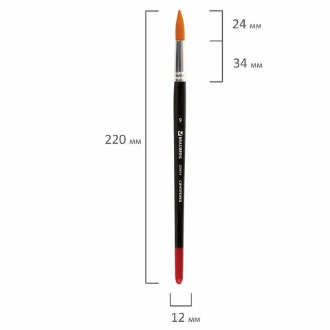 Кисть BRAUBERG синтетика, круглая, №9, 200854