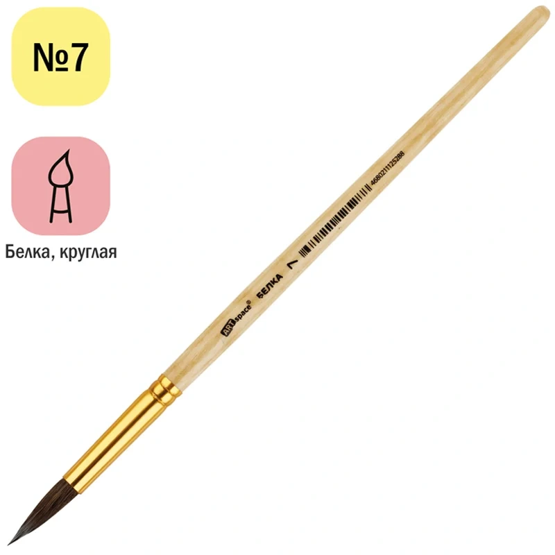 Кисть для рисования из белки Artspace №7, круглая, короткая ручка