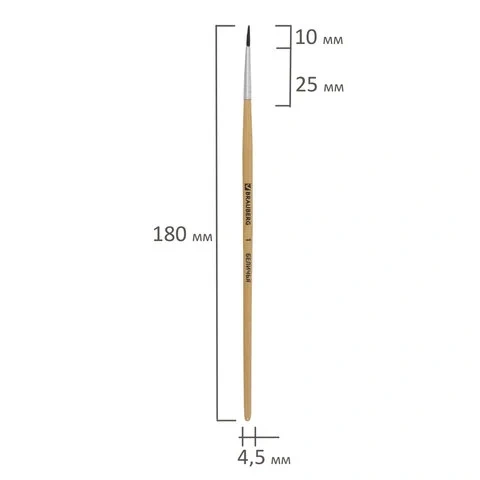 Художественная круглая кисть из натурального волоса белки. Кисть имеет острый кончик и отличается хорошей мягкостью и эластичностью. Подходит для работы с акварелью, темперой, гуашью. Снабжена защитным пластиковым колпачком. Характеристики Количество кистей в наборе: 1 шт. Ворс: беличья Номер кисти: 1 Тип кисти: круглая Ручка: длинная Упаковка: нет Артикул производителя: 200178. Штрих-код: 4606224045078. Производитель: Китай.