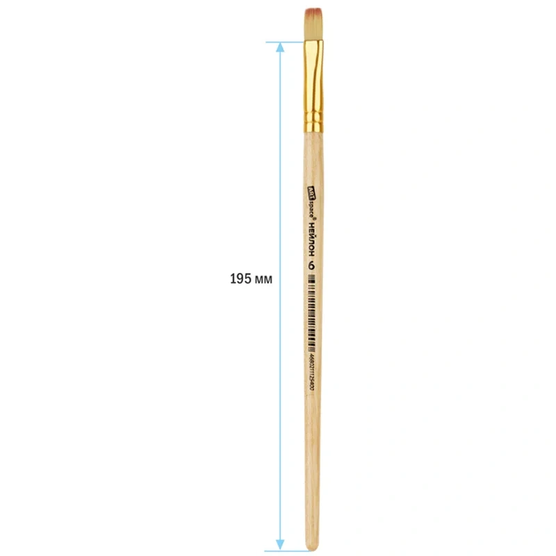 Кисть для рисования из нейлона Artspace №6, плоская, короткая ручка