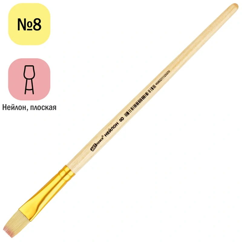 Кисть для рисования из нейлона Artspace №8, плоская, короткая ручка