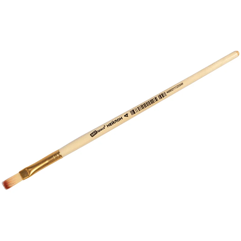 Художественная кисть ArtSpace из нейлона - это недорогой вариант для школьников, где редко пользуются акрилом и маслом, чаще гуашью и акварелью. Она идеальна для начинающих художников, поэтому их часто используют в детских образовательных учреждениях. Кисть плоской формы с короткой ручкой из дерева также подходит для малышей.
