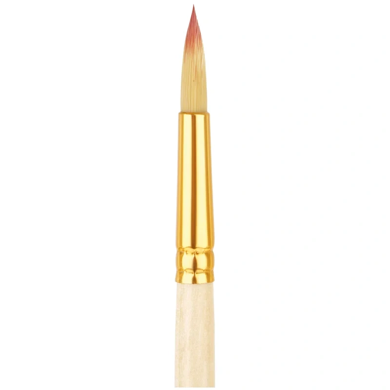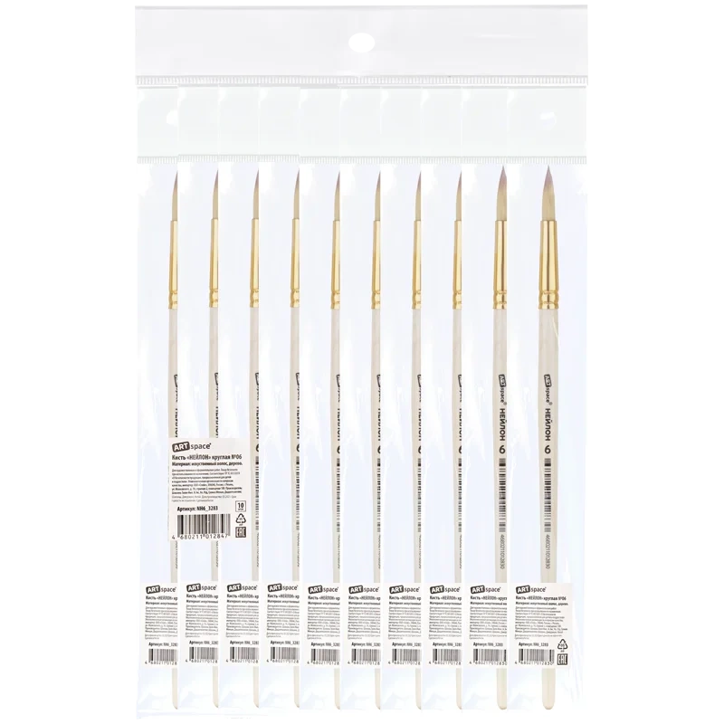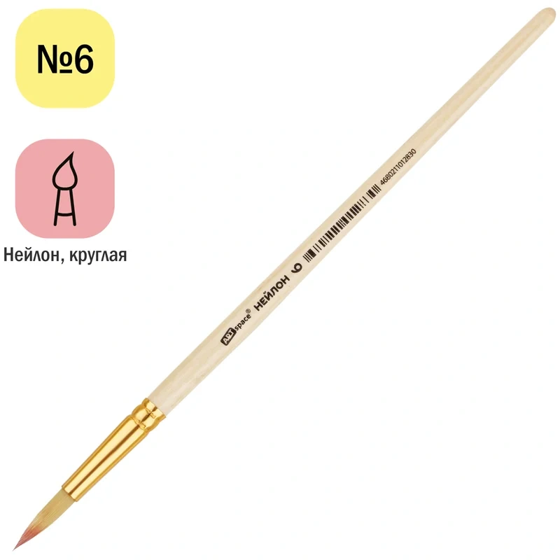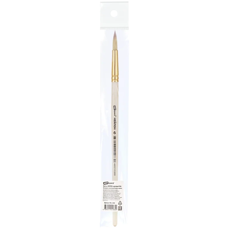 Художественная кисть ArtSpace из нейлона - это недорогой вариант для школьников, где редко пользуются акрилом и маслом, чаще гуашью и акварелью. Она идеальна для начинающих художников, поэтому их часто используют в детских образовательных учреждениях. Кисть круглой формы с короткой ручкой из дерева также подходит для малышей.