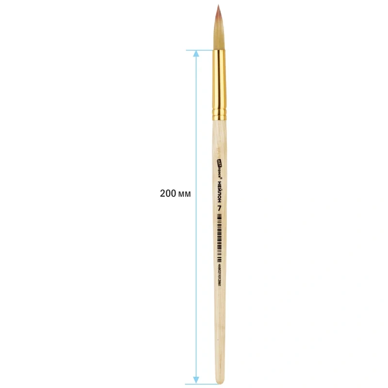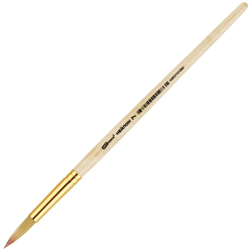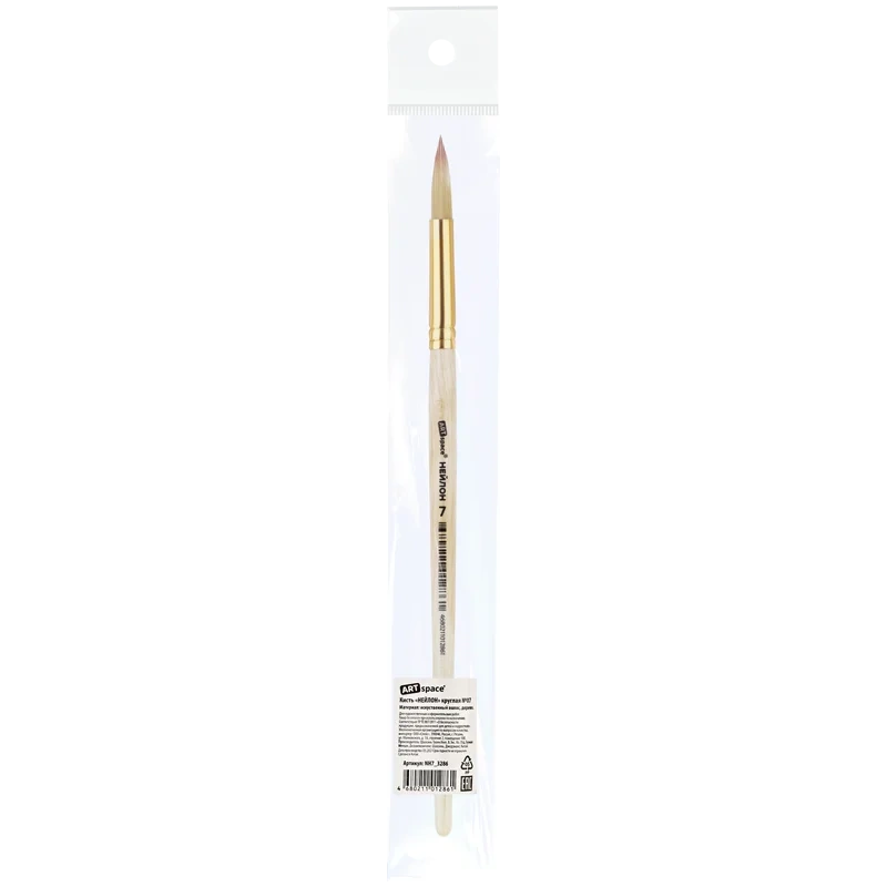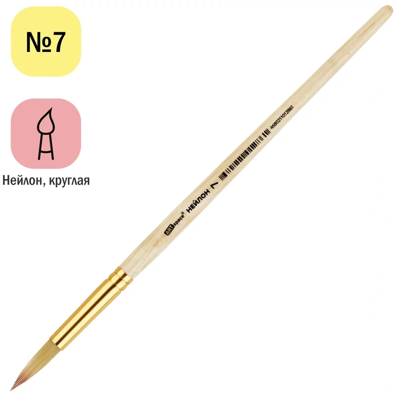 Художественная кисть ArtSpace из нейлона - это недорогой вариант для школьников, где редко пользуются акрилом и маслом, чаще гуашью и акварелью. Она идеальна для начинающих художников, поэтому их часто используют в детских образовательных учреждениях. Кисть круглой формы с короткой ручкой из дерева также подходит для малышей.