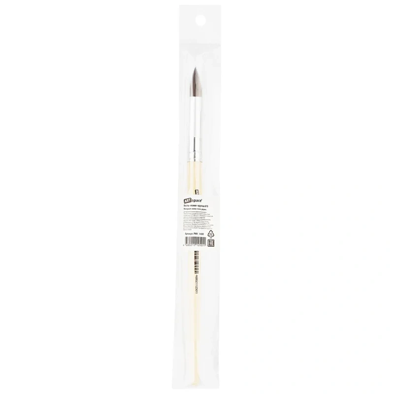 Художественные кисти ArtSpace изготовлены из волоса пони. Он несколько толще, чем у белки, расстояние между волосками больше, поэтому воду такая кисточка набирает меньше, чем из белки или колонка. Приобретают форму конуса, не слишком упруги. Кисть круглой формы с короткой ручкой из дерева идеальна для начинающих художников, поэтому её часто используют в детских образовательных учреждениях.