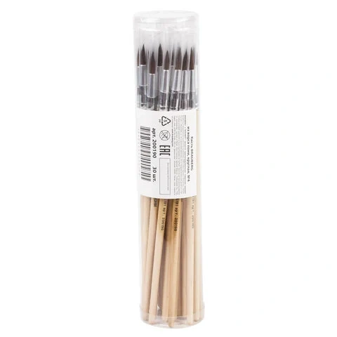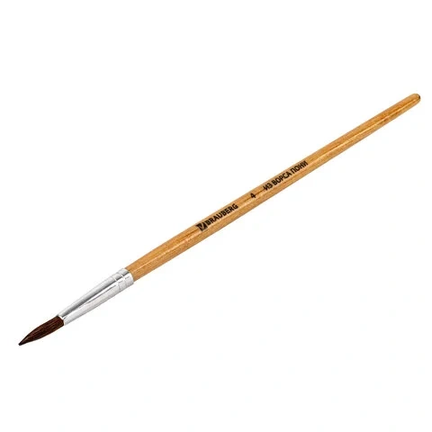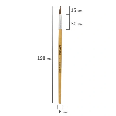 Круглая кисть из волоса пони. Хорошо сохраняет форму и отлично удерживает краску. Подходит для работы с гуашью, тушью. Снабжена защитным пластиковым колпачком. Характеристики Количество кистей в наборе: 1 шт. Ворс: из ворса пони Номер кисти: 4 Тип кисти: круглая Ручка: длинная Упаковка: нет Артикул производителя: 200190. Штрих-код: 4606224045191. Производитель: Китай.