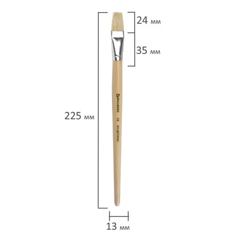 Кисть из щетины обладает высокой упругостью, хорошо держит форму, долговечна и надежна. Кисть № 16 позволит быстро заполнить фон, наносить крупные мазки и линии. Деревянную лакированную рукоятку кисти удобно держать в руке.