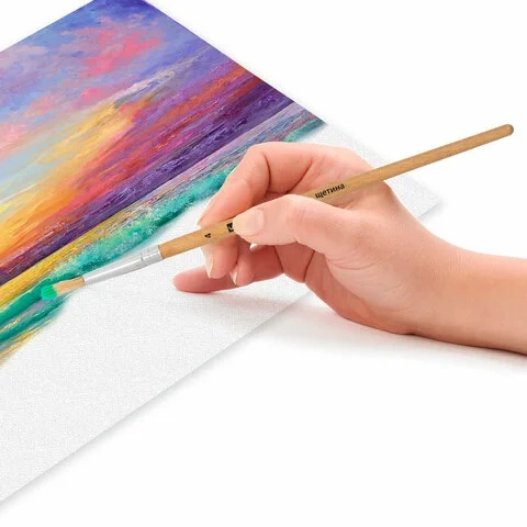 Кисть из щетины обладает высокой упругостью, хорошо держит форму, долговечна и надежна. Кисть № 4 позволит прорисовывать детали. Деревянную лакированную рукоятку кисти удобно держать в руке.