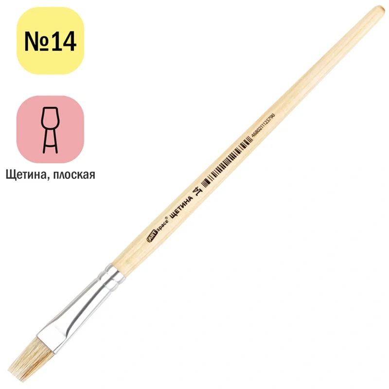 Кисть для рисования из щетины Artspace №14, плоская, короткая ручка