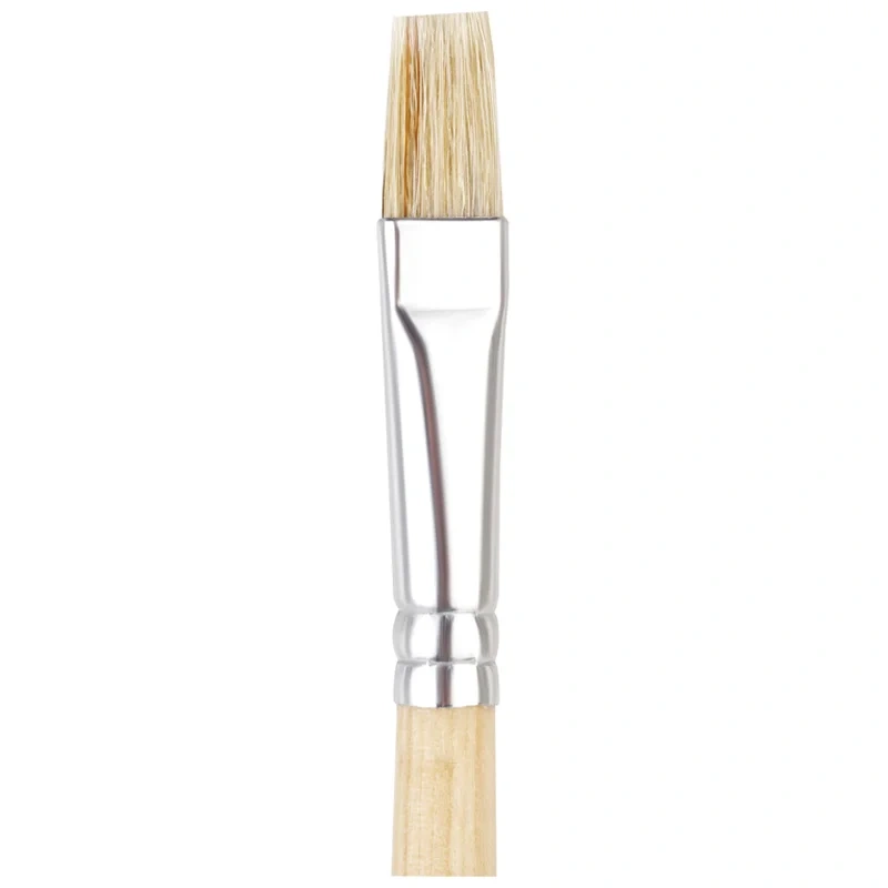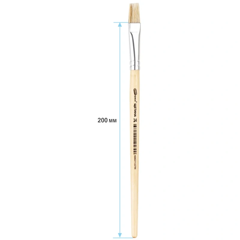 Художественные кисти ArtSpace изготовлены из качественной щетины. Изделие даже после продолжительного использования не теряет форму. Ещё одним важным свойством является расщеплённый кончик, который способствует хорошей наполняемости кисти и ровному нанесению краски. Кисть плоской формы с короткой ручкой из дерева предназначена для работ с «тяжёлыми красками»: маслом, акрилом, темперой, гуашью. Натуральные кисти из щетины - отличный инструмент как для детского и школьного творчества, так для хобби и профессиональной живописи. Ручка кисти изготовлена из берёзы и покрыта глянцевым лаком.