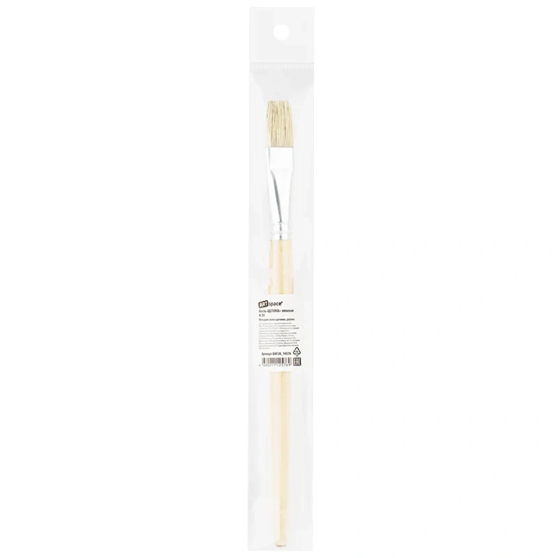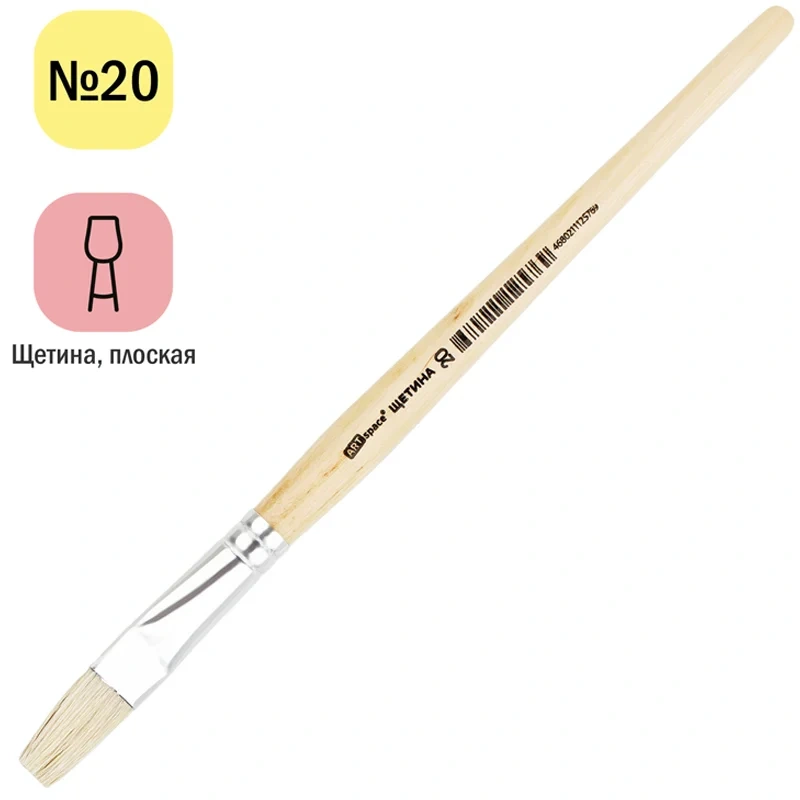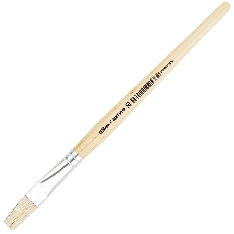 Художественные кисти ArtSpace изготовлены из качественной щетины. Изделие даже после продолжительного использования не теряет форму. Ещё одним важным свойством является расщеплённый кончик, который способствует хорошей наполняемости кисти и ровному нанесению краски. Кисть плоской формы с короткой ручкой из дерева предназначена для работ с «тяжёлыми красками»: маслом, акрилом, темперой, гуашью. Натуральные кисти из щетины - отличный инструмент как для детского и школьного творчества, так для хобби и профессиональной живописи. Ручка кисти изготовлена из берёзы и покрыта глянцевым лаком.