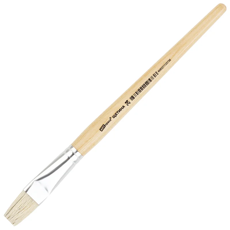 Художественные кисти ArtSpace изготовлены из качественной щетины. Изделие даже после продолжительного использования не теряет форму. Ещё одним важным свойством является расщеплённый кончик, который способствует хорошей наполняемости кисти и ровному нанесению краски. Кисть плоской формы с короткой ручкой из дерева предназначена для работ с «тяжёлыми красками»: маслом, акрилом, темперой, гуашью. Натуральные кисти из щетины - отличный инструмент как для детского и школьного творчества, так для хобби и профессиональной живописи. Ручка кисти изготовлена из берёзы и покрыта глянцевым лаком.