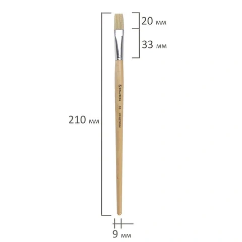 Кисть из щетины обладает высокой упругостью, хорошо держит форму, долговечна и надежна. Кисть № 10 позволит прорисовывать детали и наносить крупные мазки и линии. Деревянную лакированную рукоятку кисти удобно держать в руке.