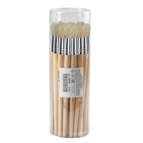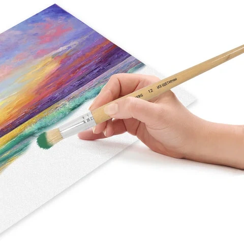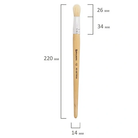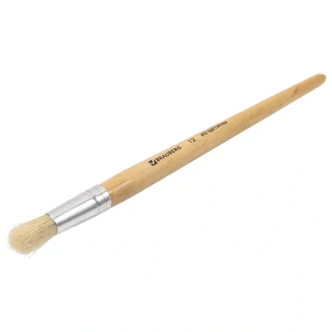 Кисть из щетины обладает высокой упругостью, хорошо держит форму, долговечна и надежна. Кисть № 12 позволит быстро заполнить фон, наносить крупные мазки и линии. Деревянную лакированную рукоятку кисти удобно держать в руке.