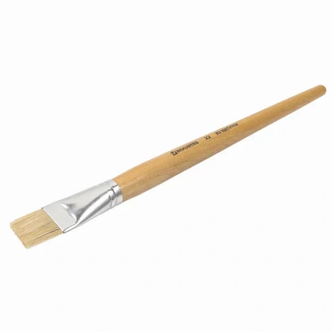 Кисть из щетины обладает высокой упругостью, хорошо держит форму, долговечна и надежна. Кисть № 22 позволит быстро заполнить фон, наносить крупные мазки и линии. Деревянную лакированную рукоятку кисти удобно держать в руке.