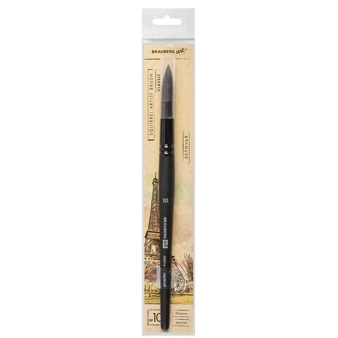 Кисть художественная проф. BRAUBERG ART CLASSIC, белка, круглая, № 10, короткая ручка, 200916