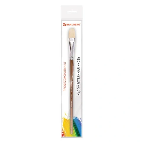 Кисть художественная профессиональная BRAUBERG ART 'CLASSIC', щетина, овальная, № 26, длинная ручка,