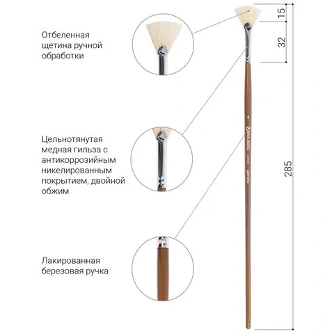 Кисть художественная профессиональная BRAUBERG ART 'CLASSIC', щетина, веерная, № 4, длинная ручка, 2