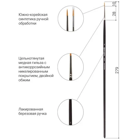 Изготовлена с применением высококачественной южно-корейской синтетики. Синтетика превосходит щетину в легкости очистки и износостойкости, а упругость ворса и прекрасные впитывающие свойства пучка обеспечивают идеальное сохранение формы мазка.