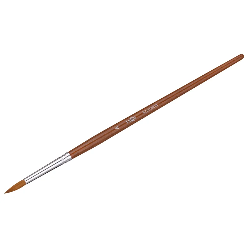 Кисти ГАММА из волоса колонка серии «Классическая» – отличаются упругостью и эластичностью. Такие кисти считаются универсальными и подходят для работы с акварелью, гуашью, акрилом и маслом. Колонок хорошо держит краску, имеет мягкую структуру и коническую форму, что дает возможность одной кистью выполнять не только широкие мазки или большие заливки, но и прорисовывать мелкие детали. Кисти из колонка чаще выбирают ученики художественных школ. Ручка кисти изготовлена из берёзы и покрыта глянцевым лаком. Цельнометаллическая никелированная бесшовная обойма обеспечивает надёжное соединение ручки и волосяного пучка.