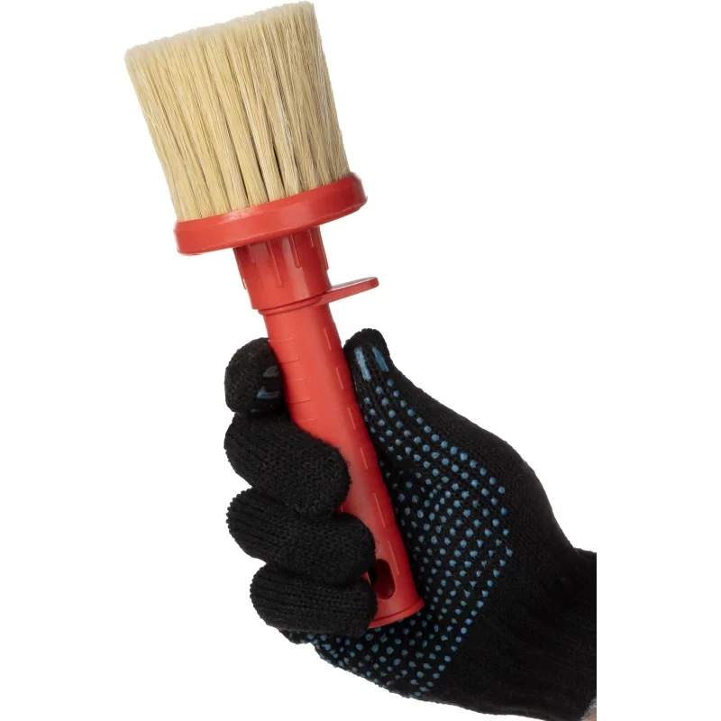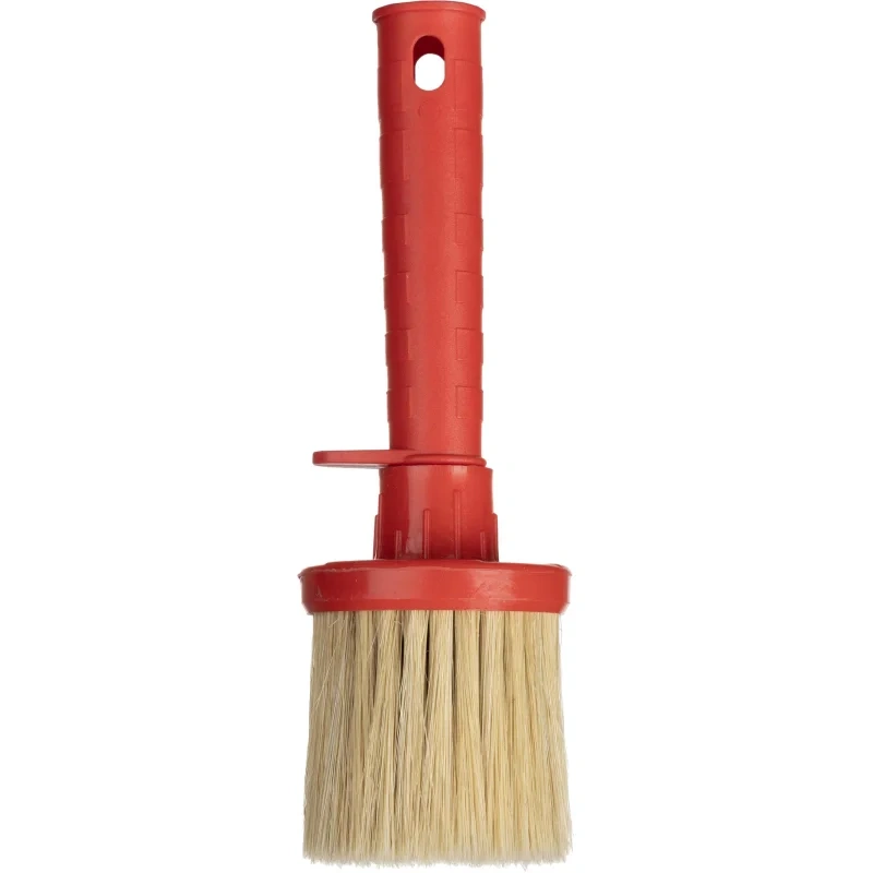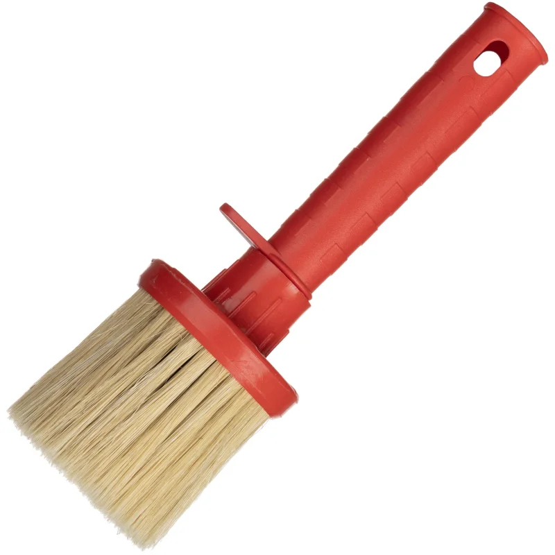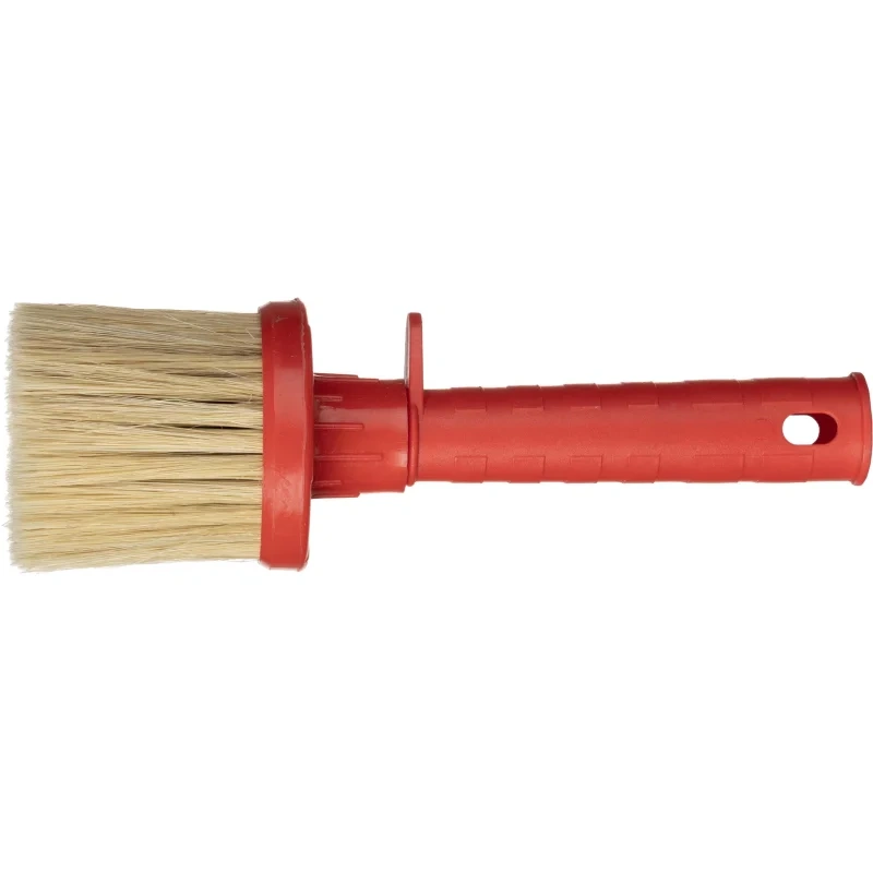 Маховая кисть с кустовой набивки. Светлая натуральная щетина обеспечивает высокое качество покраски и долговечность инструмента. У кисти есть съемная пластиковая ручка. К ней можно прикрепить телескопический или резьбовой удлинитель. Ручка полая с отверстием для фиксации удлинителя или для подвешивания. Ширина кисти: 65 мм, толщина: 5 мм. Длина кисти составляет 224 мм.