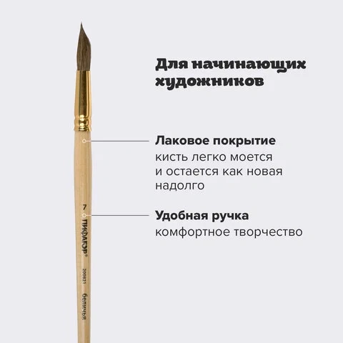 Кисть ПИФАГОР, беличья, круглая, № 7, 200821