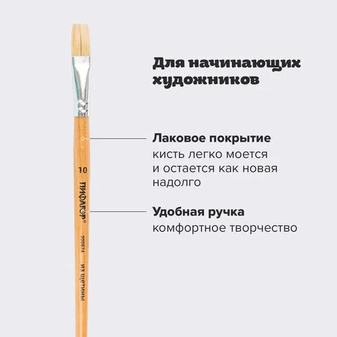Кисть ПИФАГОР, щетина, плоская, № 10, 200874