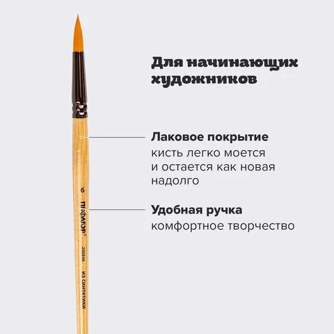Кисть ПИФАГОР, синтетика, круглая, № 6, 200846
