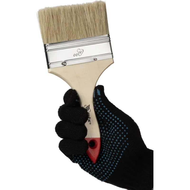 Плоская кисть ’Стандар’ 4’’ предназначена для работ с масляными красками и лаками. Ее можно использовать для отделки внутренних и внешних поверхностей, для торцевания или лакировки, окрашивания поверхностей различного размера. Кисть изготовлена из натуральной щетины одинарной выварки, расщепленной на концах. Щетина кисти надежно закреплена металлическим бандажом с антикоррозийным покрытием. Деревянная лакированная ручка утолщена в зоне охвата. Ширина изделия составляет 100 мм, толщина ворса: 11 мм. Длина кисти составляет 227 мм.