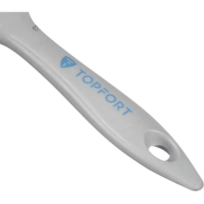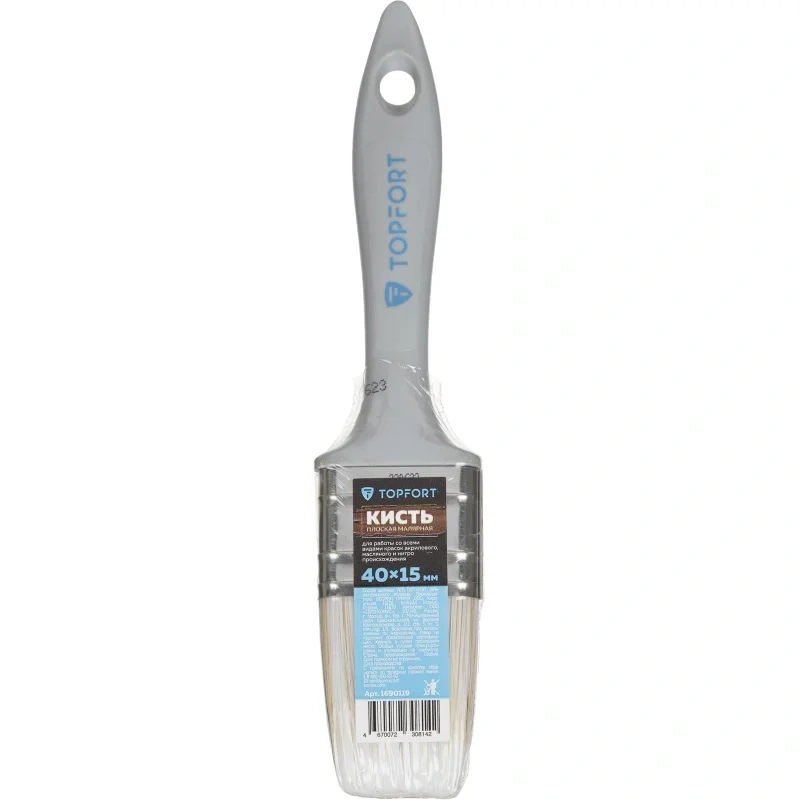 Плоская кисть Topfort подойдет для профессионального и бытового использования, для отделки внутренних и внешних поверхностей, для торцевания или лакировки, окрашивания поверхностей различного размера. Ее можно использовать для работ с акриловыми красками. Комбинированная щетина кисти состоит на 30% из высококачественных натуральных волокон и на 70% из специально произведенных синтетических волокон (ТОПС 70%). Ворс имеет утонченные белые кончики, которые обеспечивают идеально тонкий слой при нанесении. Натуральные волокна кисти служат для сбора и удержания краски, а также для прочности кисти. Ширина изделия составляет 40 мм, толщина ворса: 15 мм. Длина кисти составляет 205 мм. Обойма кисти изготовлена из металла, рукоять — из пластика.