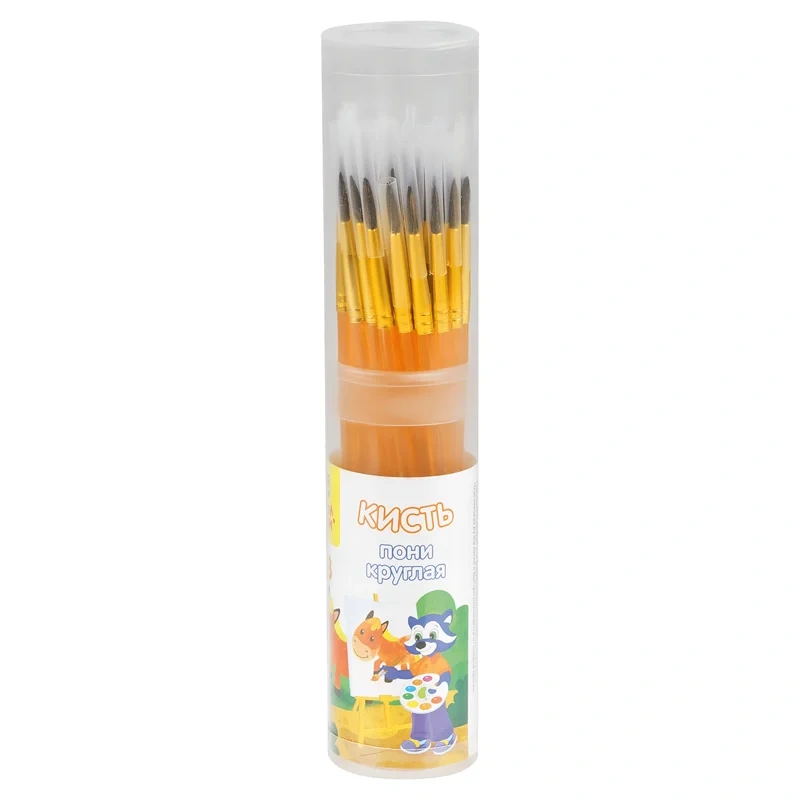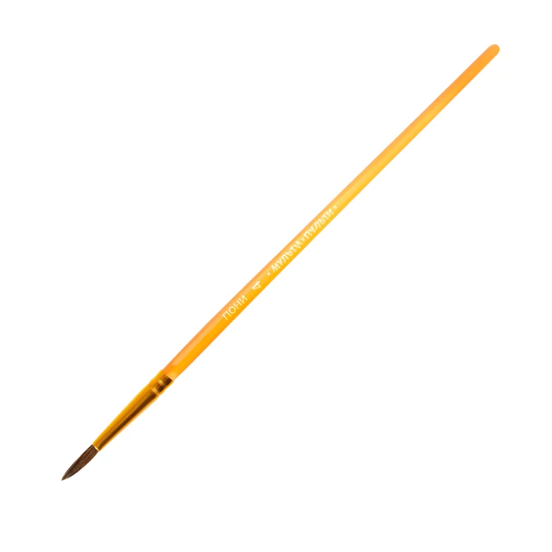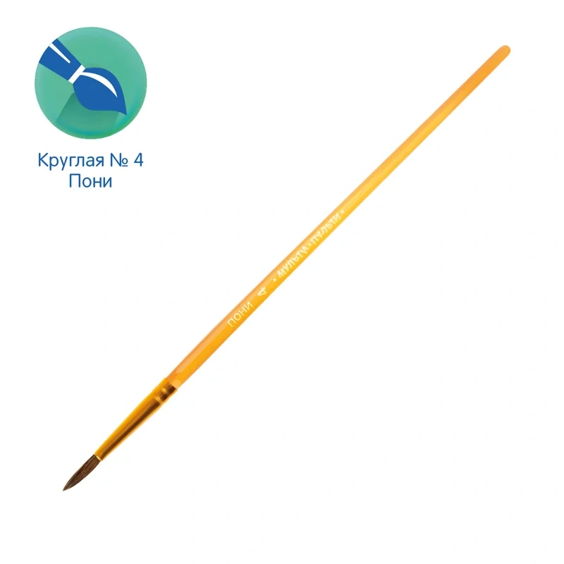 Кисть круглая № 4 «Мульти-Пульти» предназначена для детей с начальным и средним уровнем подготовки. Используемый натуральный волос пони обладает капиллярным эффектом, поэтому кисть можно использовать в том числе для акварельных красок. Форма обоймы ? круглая.