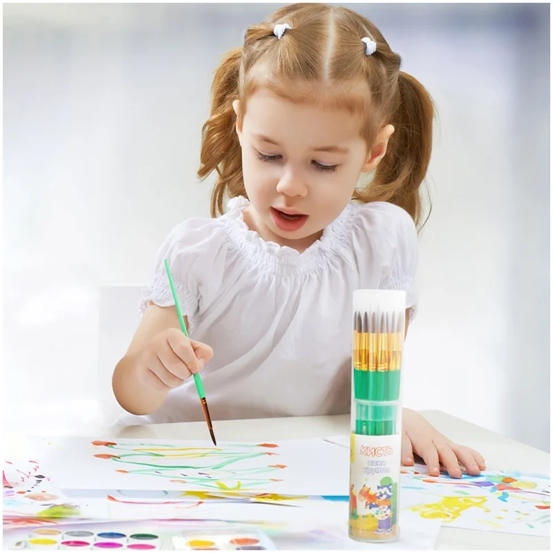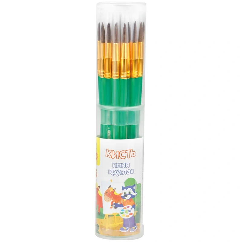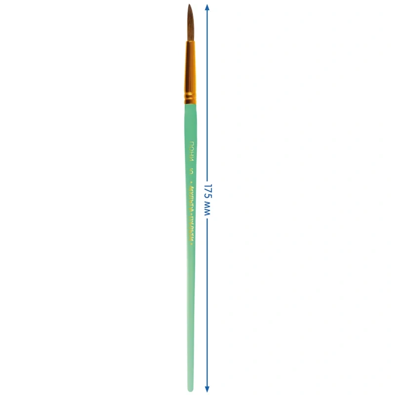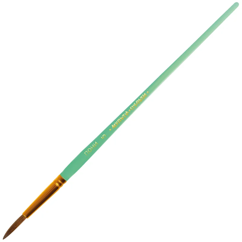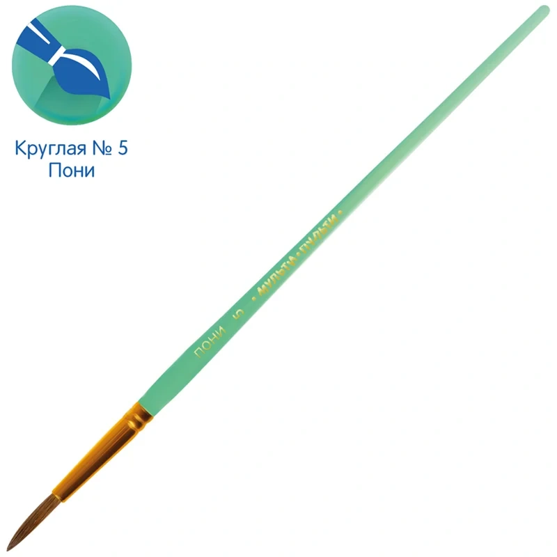 Кисть круглая № 5 «Мульти-Пульти» предназначена для детей с начальным и средним уровнем подготовки. Используемый натуральный волос пони обладает капиллярным эффектом, поэтому кисть можно использовать в том числе для акварельных красок. Форма обоймы ? круглая.