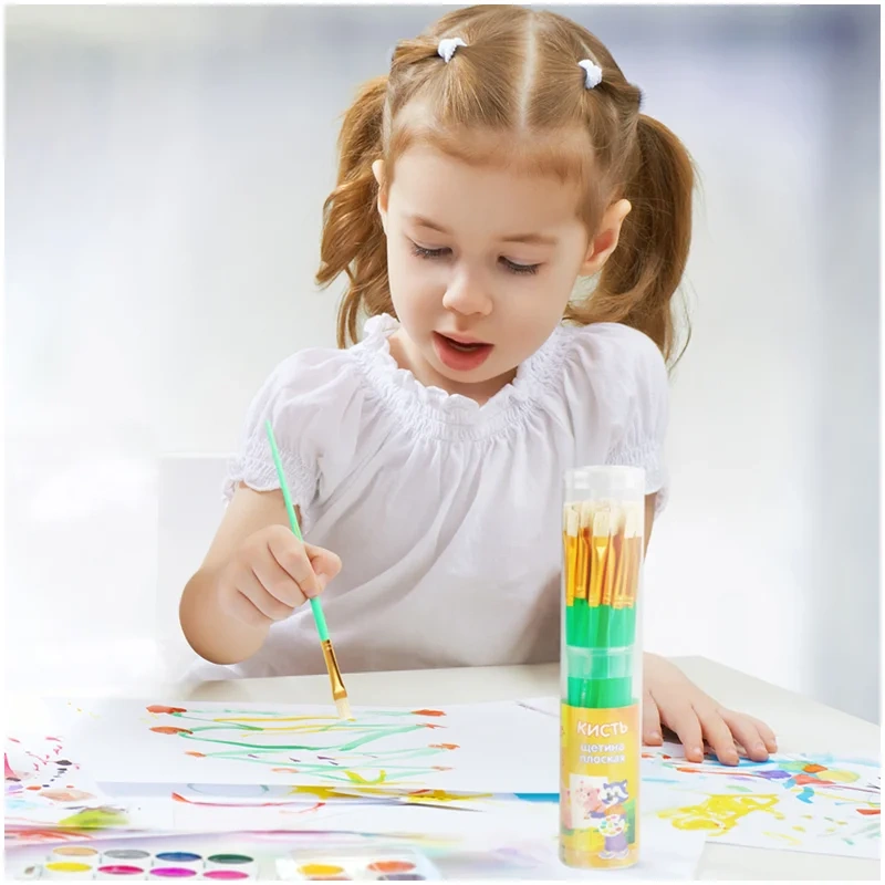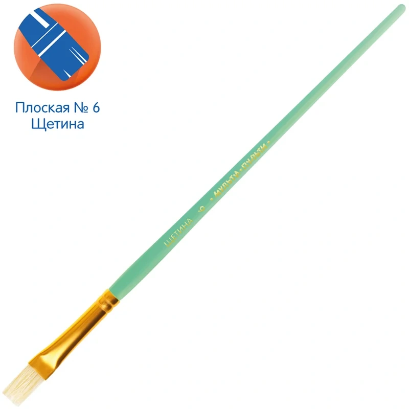 Кисть круглая № 6 «Мульти-Пульти» предназначена для детей с начальным и средним уровнем подготовки. Волос щетины подходит для работы с плотными и тяжелыми красками, также может использоваться для работ с клеем в аппликациях. Форма обоймы ? плоская.