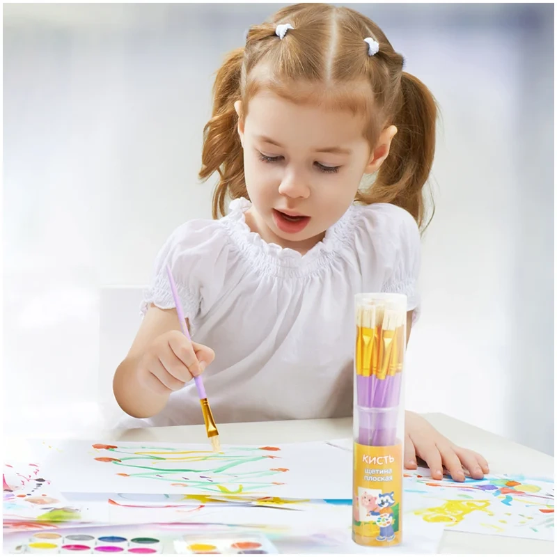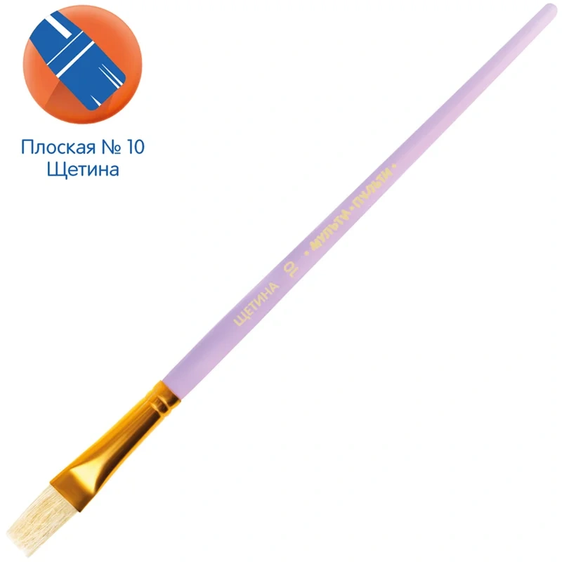 Кисть круглая № 10 «Мульти-Пульти» предназначена для детей с начальным и средним уровнем подготовки. Волос щетины подходит для работы с плотными и тяжелыми красками, также может использоваться для работ с клеем в аппликациях. Форма обоймы ? плоская.