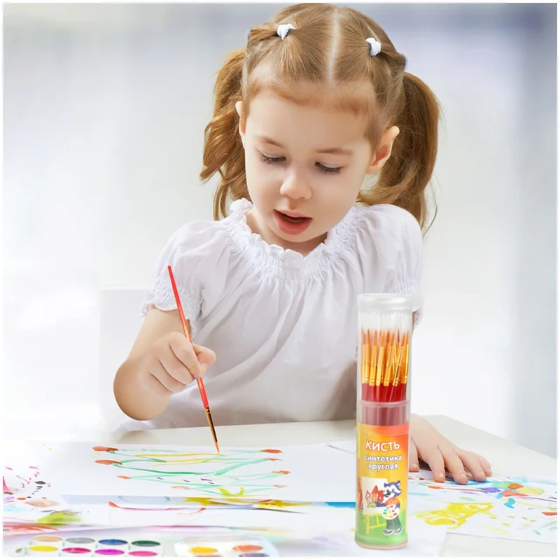 Кисть круглая № 2 «Мульти-Пульти» предназначена для детей с начальным и средним уровнем подготовки. Используемый синтетический волос обладает капиллярным эффектом, поэтому кисть можно использовать в том числе для акварельных красок. Форма обоймы ? круглая.