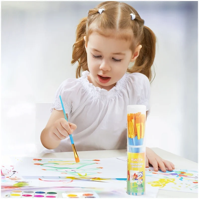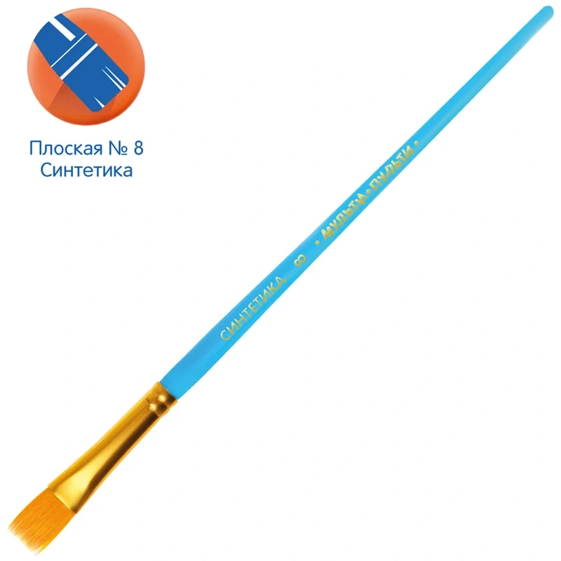 Кисть плоская № 8 «Мульти-Пульти» предназначена для детей с начальным и средним уровнем подготовки. Используемый синтетический волос обладает капиллярным эффектом, поэтому кисть можно использовать в том числе для акварельных красок. Форма обоймы ? плоская.