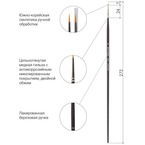 Кисть художественная профессиональная BRAUBERG ART 'CLASSIC', синтетика жесткая, круглая, № 00, длин