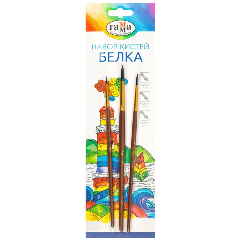 Набор кистей Гамма 'Классические' 3шт., белка, круглые № 2, 3, 4, блистер, европодвес