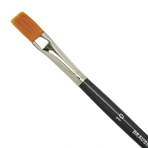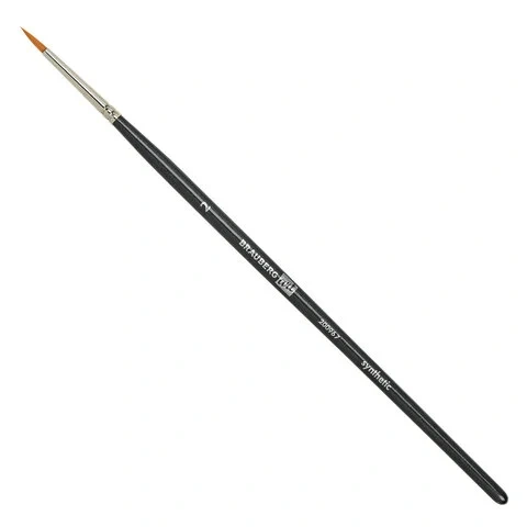 Кисти изготовлены с применением синтетики. Отличаются универсальностью в использовании, обусловленной упругостью ворса и прекрасными впитывающими свойствами пучка. Короткая ручка из древесины покрыта лаком, что защищает ее от воздействия красок и влаги. Форма пучка - круглая № 0, 2, 3, 4; плоская № 2, 4, 6, 10, 14, 20; овальная № 8; скошенная № 12. Номер кисти соответствует реальной ширине пучка в миллиметрах. Упаковка - текстильный пенал.