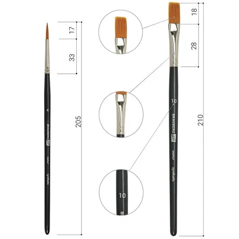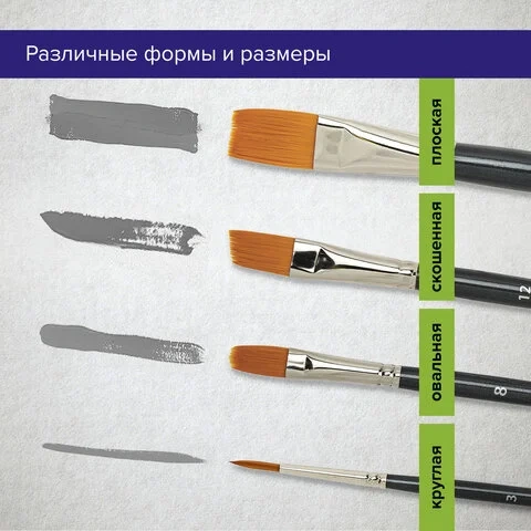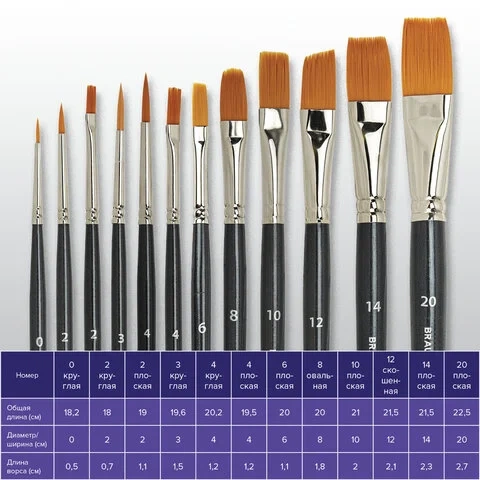 | Номер кисти | круглая № 0, 2, 3, 4; плоская № 2, 4, 6, 10, 14, 20; овальная № 8; скошенная № 12 |