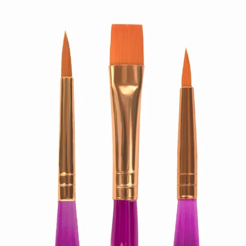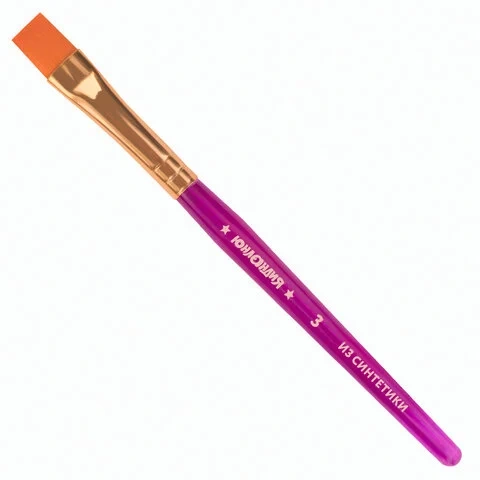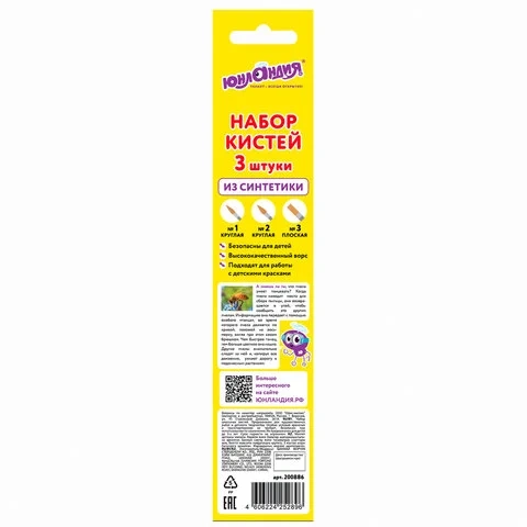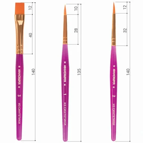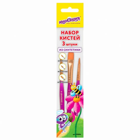 Кисти ЮНЛАНДИЯ, набор 3 шт. (синтетическая круглая №1, 2, плоская №3), 200886