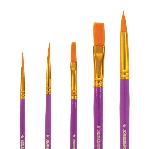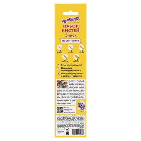 Кисти ЮНЛАНДИЯ, набор 5 шт. (синтетическая круглая № 1,2,5, плоская № 5,8), 200894